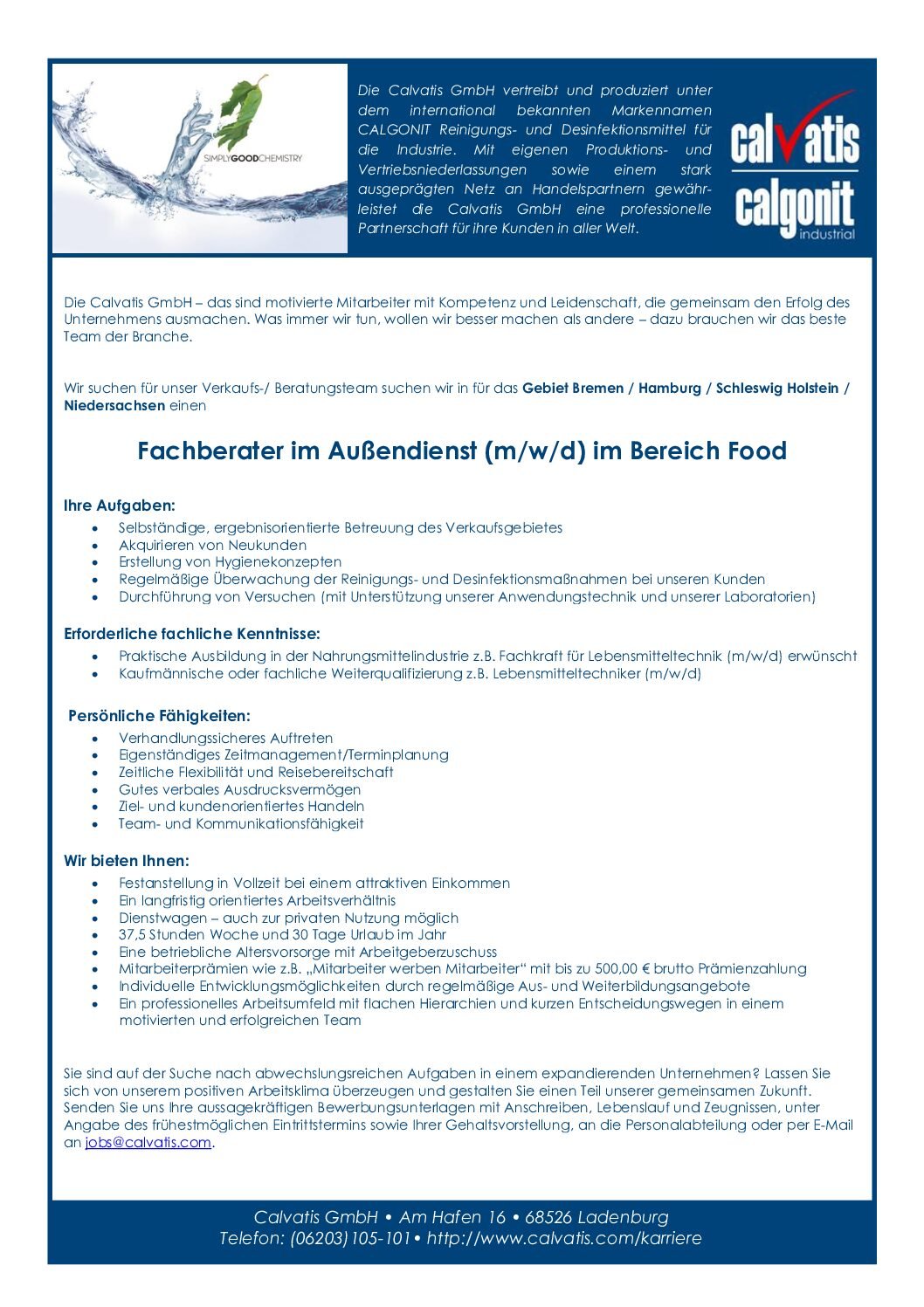 Calvatis ist einer der weltweit führenden unabhängigen Hersteller von Reinigungs- und Desinfektionsmitteln. Unseren Kunden bieten wir individuelle und qualitativ einzigartige Produkte und Hygienekonzepte, die ihresgleichen suchen. Calvatis wird sich auch in Zukunft weiterentwickeln, weil die Unternehmensstruktur es ermöglicht, sich schnell und flexibel den Gegebenheiten des Marktes anzupassen.