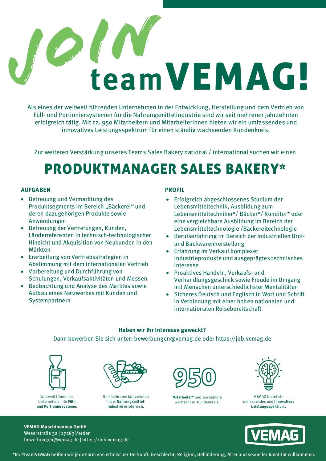 Produktmanager Sales Bakery (m/w/d) | VEMAG Maschinenbau GmbH